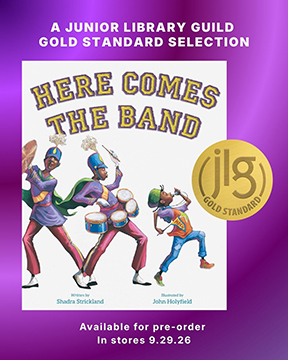 I am elated to share that the expert editors over at Junior Library Guild has selected HERE COMES THE BAND as a Gold Standard Selection prior to publication. This is fantastic news as it shines a light on the book for librarians to add it to shelves! It also means that favorable reviews are to come. I can’t wait to share this book with you!